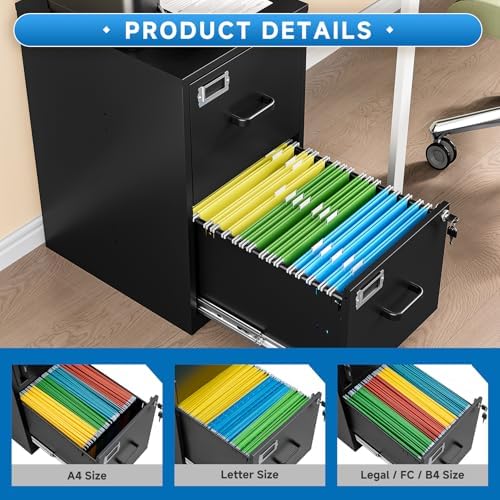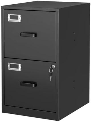 Vertical File Cabinet with Lock | 2 Drawer Steel Filing Storage for Home & Office | Secure Letter Size File Organizer |