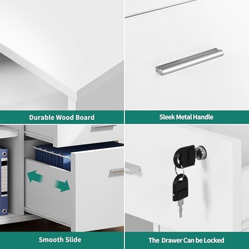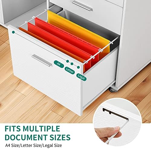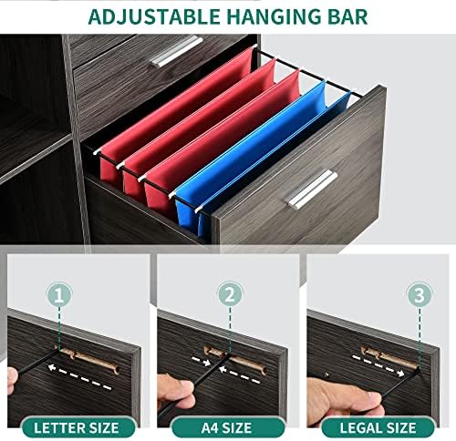 The bottom file drawer features hanging bars to keep your A4, letter, and legal-sized files organized and readily accessible. For added privacy, the top drawer is equipped with a lock, safeguarding your personal belongings.