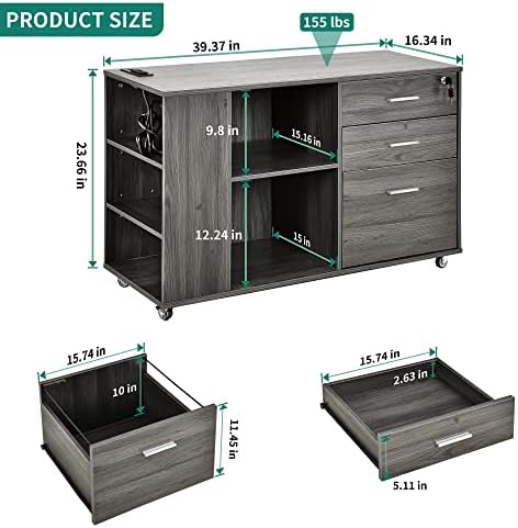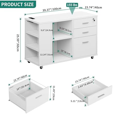 With 2 UL-Listed outlets and 2 USB ports, plus a 6.5-foot power cord, this wood file cabinet allows you to charge devices like your printer, lamp, phone, iPad, and laptop simultaneously. No more searching for outlets—stay powered during work or study sessions.