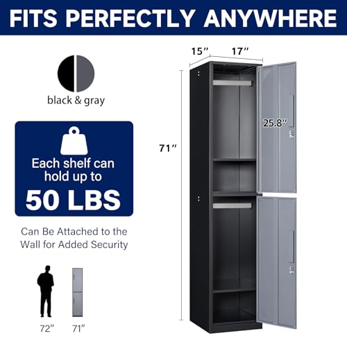 Designed with ample storage space, our ventilated lockers are perfect for both employees and home use. Each locker features 16″ deep compartments with dimensions of 71″ H x 15″ W x 17″ D, providing plenty of room to securely store personal belongings.